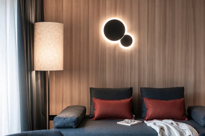 Von Anfang an wurde bei der Planung unseres 5-eckigen Gebäudes mit den modernen Apartments Wert auf optimale Ausnutzung der natürlichen Gegebenheiten gelegt. Deshalb wurde das Dach so geplant, dass es perfekt für die Nutzung von Solarenergie geeignet ist. Die Fassadengestaltung mit heimischem Lärchenholz schafft eine Verbindung vom Gebäude zur umliegenden Natur am Sonnenhang. Klare Linien und die Verwendung hochwertiger Materialien zieht sich auch durch die Gestaltung der Innenräume. Die Verknüpfung der physischen mit der digitalen Welt erfolgt unmerklich und bietet intuitiv bedienbare Annehmlichkeiten.